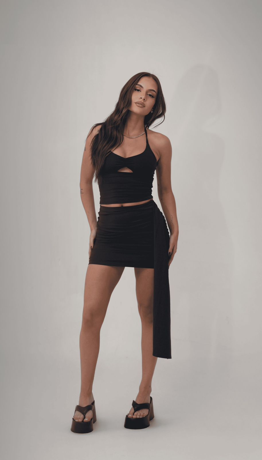 Saia Drapeada – Caimento Perfeito que Realça Sua Silhueta